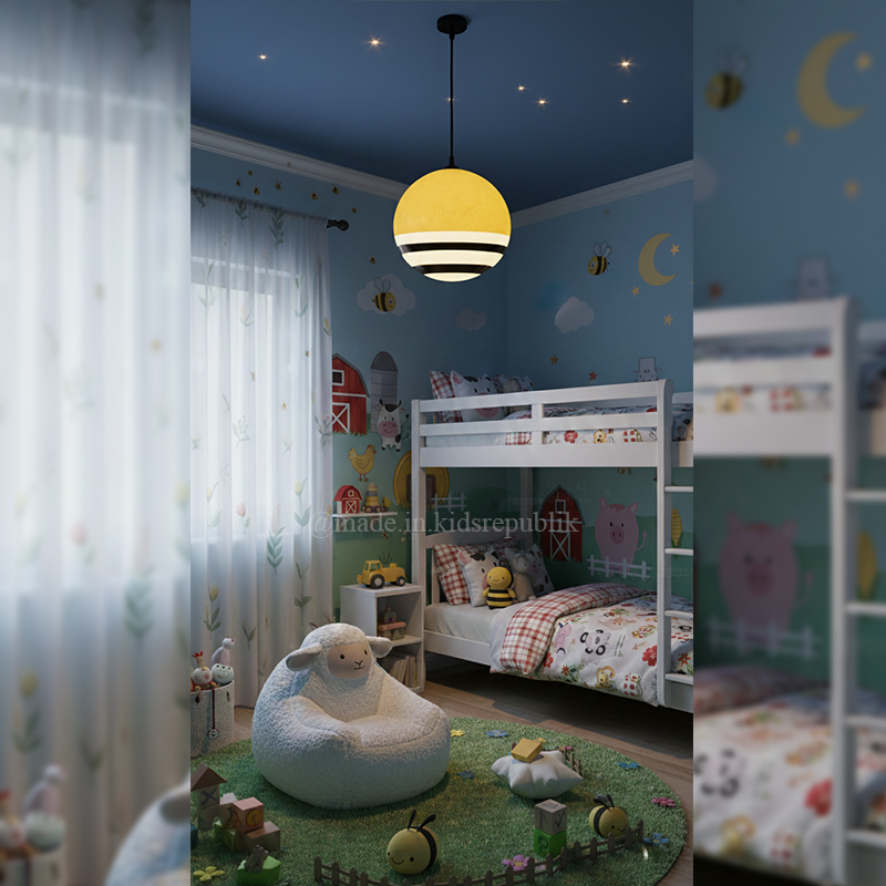 Brighten your child’s room with this charming fiberglass pendant light. Featuring a glowing unique design, it creates a cozy and magical atmosphere. Durable, lightweight, and stylish, it’s the perfect centerpiece for a dreamy nursery or playroom.