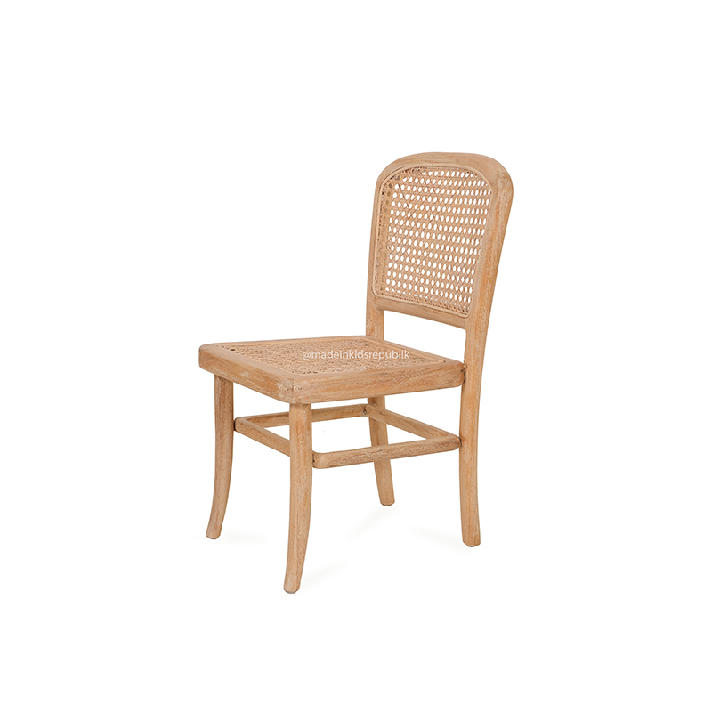 Embodying a blend of traditional Indonesian design heritage and contemporary simplicity, Idaho Kids Chair exudes a warm, natural charm. The chair features a timeless design inspired by mid-century modern aesthetics. The woven cane backrest and seat highlight traditional craftmanship, blending functionality with classic elegance.