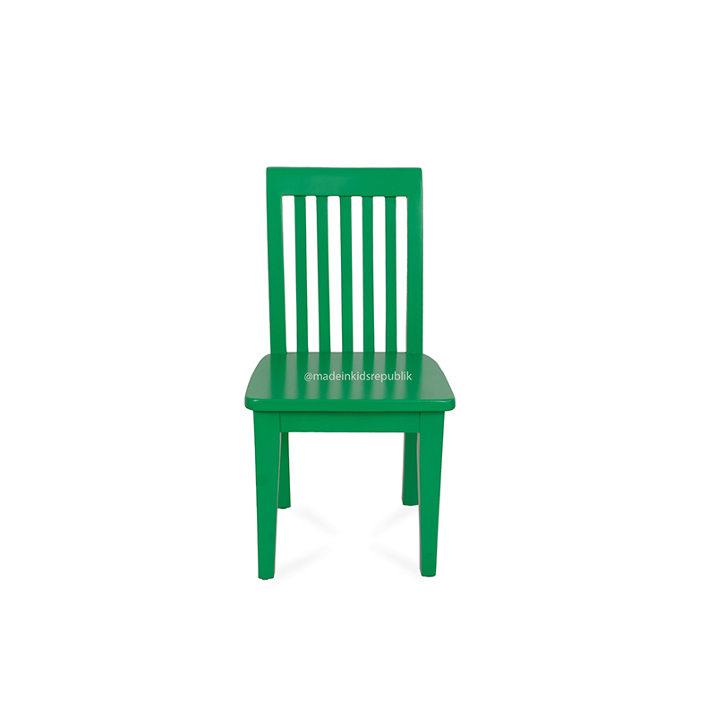 Maryland Kids Chair showcases a playful take on traditional furniture, featuring a slatted backrest and clean, straight legs. Its root in classic craftmanship combined with a modern color palette create a piece that is timeless yet perfectly suited for contemporary kids room.