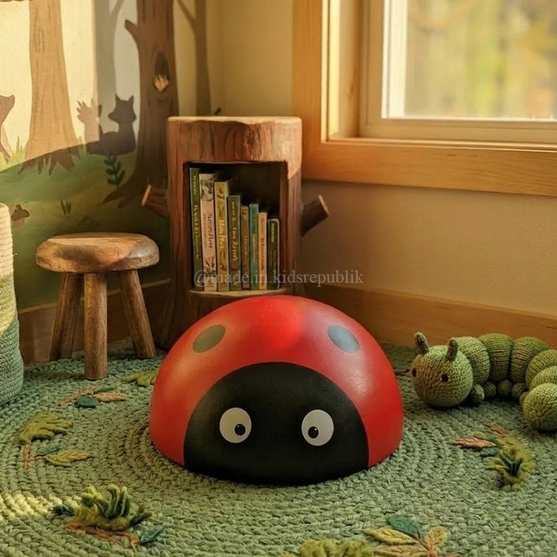 Add a pop of color to your kid’s bedroom! This fiberglass lady bug stool is the perfect blend of furniture and art. It's a comfortable seat for little ones and a delightful decorative accent that brings a forest fantasy to life. Durable, smooth, and easy to clean.